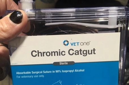 Hopefully this is the last time we will have to buy Catgut! For years we developed our heifers in a feedlot, in a much nicer climate, and then brought them home to breed. They were big and beautiful and costing us a fortune! For the past 4 years, we have kept heifer calves on their mommas until February/March, weaned them at around 10 months of age, and then put them on a minimal growth ration of hay and alfalfa until they are turned out to pasture around the middle of May. The compensatory growth the heifers experience on green grass is incredible - and cheap! They are then given 30 days to breed and whatever is pregnant becomes a cow in our herd, and whatever isn't is sold. It's a very profitable model for us, but we have had to come to terms with how many crutches we had propping up our cows all these years. Hopefully the repercussions of babying them have about run out. One of the repercussions is calving difficulties. We had 3 C-Sections on heifers last year which used up our suturing supplies. So, like I said, I hope this is the last time we have to buy Catgut!