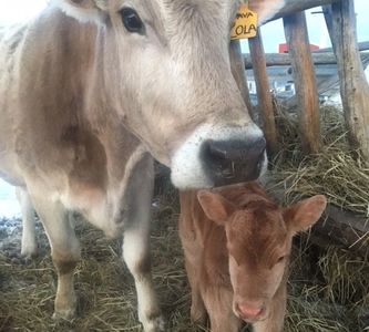 Calving 2020 has begun! This little heifer is 12 days early based on the 276 day gestation period we figure for heifers. Normal gestation is 283 days, but our heifers routinely calve much earlier than this, so that's why we figure 276 days for them. So 19 days early based on a normal cow! This heifer, 8233, is very distinct looking - very brown - so when I saw that her mother is 0237, I said "Of course!" She looks just like her mama, and just like her mama, she is an early calver! We've gone to the meadow before to be surprised by 0237 having a calf at her side when we're not quite ready to calve. Hopefully this heifer will prove to be just like her mama - still in the herd as an old lady!