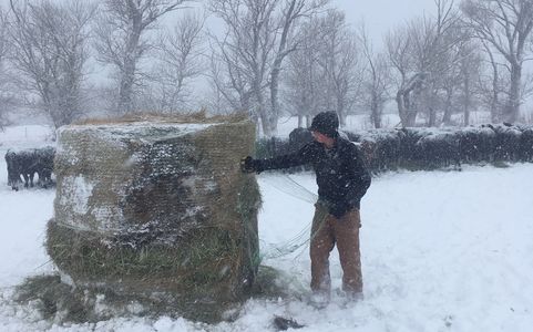 Every winter/spring, we get a fairly substantial snow - for three years in a row it was on Mother's Day! This year it happened in March and was big enough to be categorized as a bomb cyclone. Fortunately, we were on the edge of it and only received about 14 inches of snow. Our cows were in very protected areas, the wind wasn't too bad, and we have the tractors to be able to bring the cows hay, even in a bad blizzard.