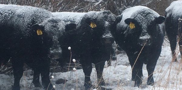 This October has nailed us with lots of early snow, and lots of really cold temperatures! These bulls found a bunch of trees to huddle in to try and stay toasty at -16F degrees ! It's not uncommon for these kind of temperatures to hit us in January and February, but the cattle are usually on hay and in lots of protection. So we adapt, put cows where they can find a little shelter, feed a little hay, and hope it warms up!