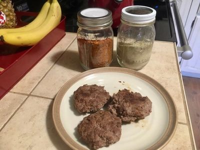 Mix beef, water and seasoning together and fry in butter - I really like using a cast iron skillet!