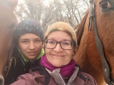 I guess you could call us lazy, but we really don't like being outside much in the winter here. But we like being productive, so we work with horsehair! This hatband is an example of Shanon's and my work - he hitches (the body of the hatband) and I braid and do finishing work (the knots and pulls). Seasons change in so many ways other than weather - horsehair season begins when the fall work is ending and ends when calving season begins. If you like our work, you can find more of it on www.facebook/RockCreekHorsehair or at www.RockCreekHorse.com